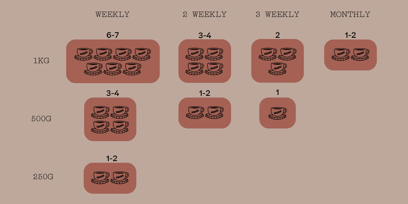 Use the table below to calculate how much coffee you'll need for your subscription.